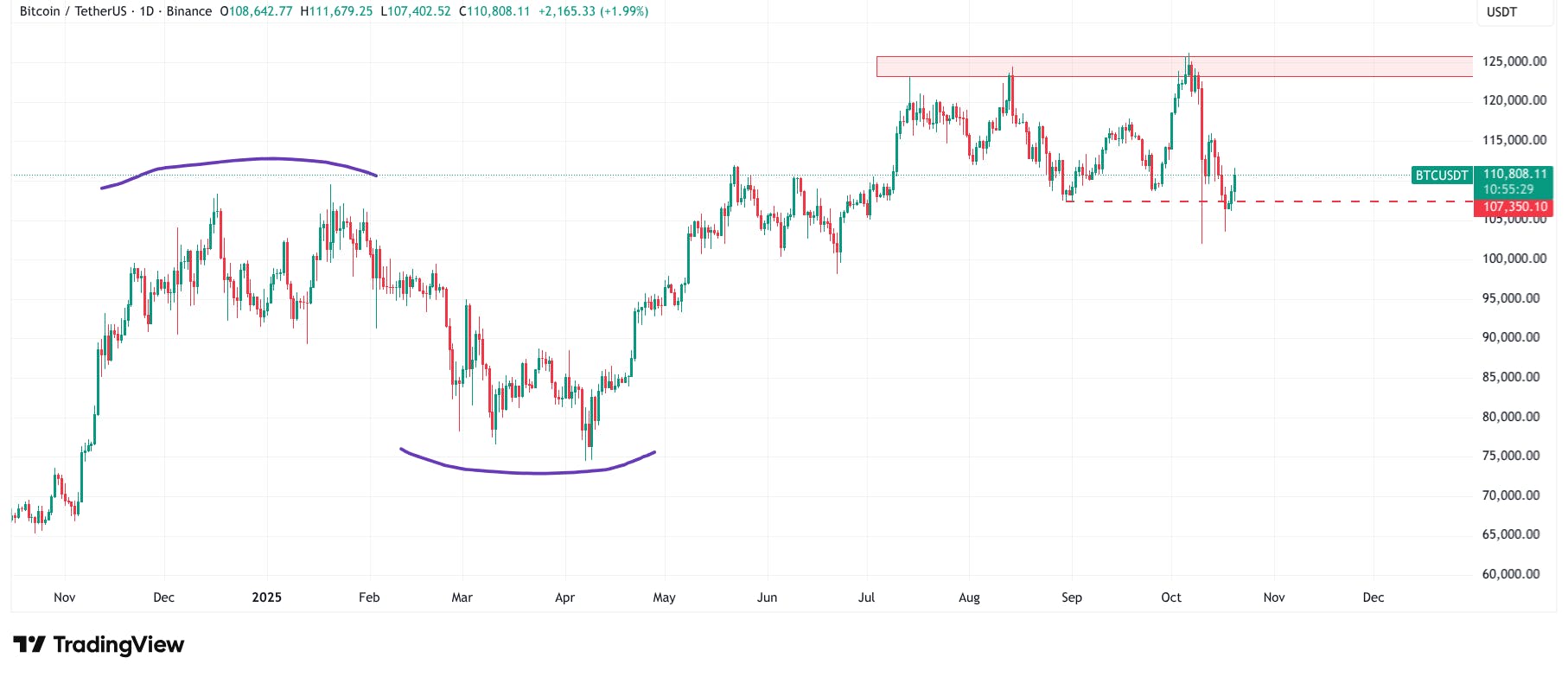 Con el precio de nuevo en 110.000 dólares, el panorama a corto plazo también se vuelve algo más optimista. No obstante, es importante que Bitcoin no caiga por debajo del último mínimo. Para verlo con más claridad, hay que acercar la vista.