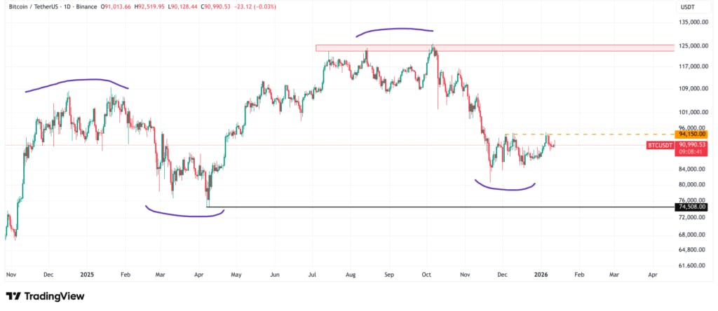 Bitcoin lleva tiempo intentando superar los 94.000 dólares, pero hasta ahora cada intento ha sido rechazado. ¿Logrará romper este nivel pronto o debemos prepararnos para una posible caída?