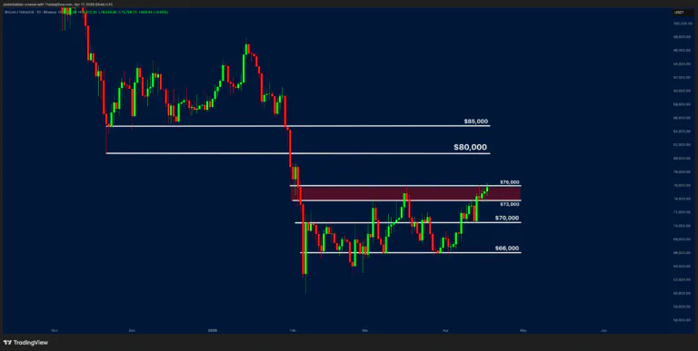 Una ruptura clara por encima de la resistencia podría abrir el camino hacia los 80.000 dólares e incluso los 85.000 dólares, donde se encuentra una nueva barrera importante. Por el contrario, un nuevo rechazo podría provocar una caída pronunciada. En ese caso, un retroceso hacia los 70.000 dólares sería probable, con 66.000 dólares como posible siguiente nivel.