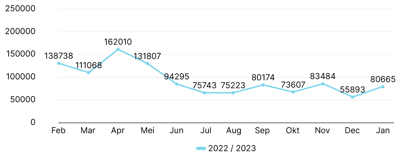 De stijging volgt op een moeilijk jaar, waarin het aantal downloads zo ongeveer halveerde. Van januari tot juni 2022 installeerden ongeveer 840.000 Nederlanders een crypto app, tegenover 444.000 in de maanden juli t/m december. De laatste keer dat er zo’n grote stijging was, was in april vorig jaar.